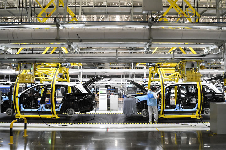 這是在位于重慶市兩江新區的賽力斯汽車超級工廠智能化生產作業現場(2024年6月7日攝)。(新華社記者 王全超/攝)