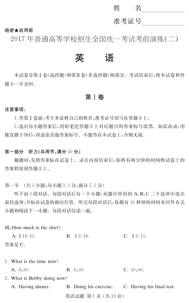 下一篇:【語文】2017年普通高等學校招生全國統一考試考前演練(二)