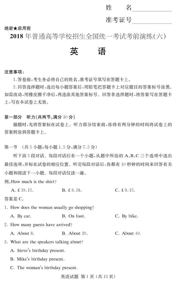 下一篇:【語文】2018年普通高等學校招生全國統一考試考前演練(六)