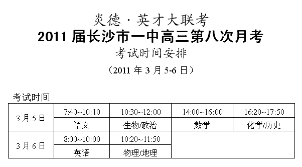 上一篇:炎德英才大聯(lián)考長(zhǎng)沙市一中2011屆高三第七次月考考試時(shí)間