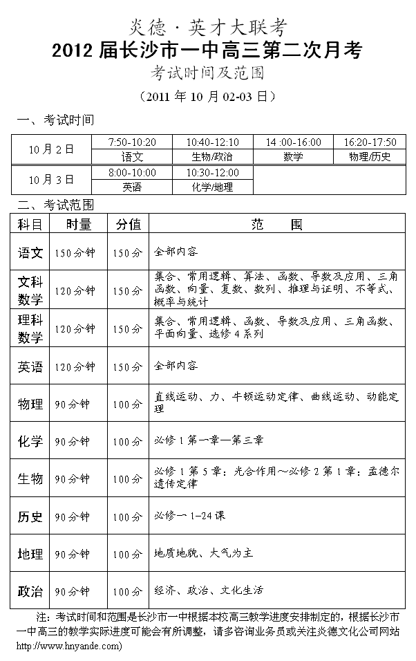 下一篇:炎德英才大聯(lián)考長(zhǎng)沙市一中2012屆高三月考試卷考試時(shí)間和范圍