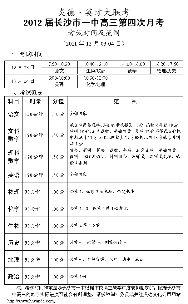 下一篇:炎德英才大聯考長沙市一中2012屆高三第五次月考考試時間和范圍