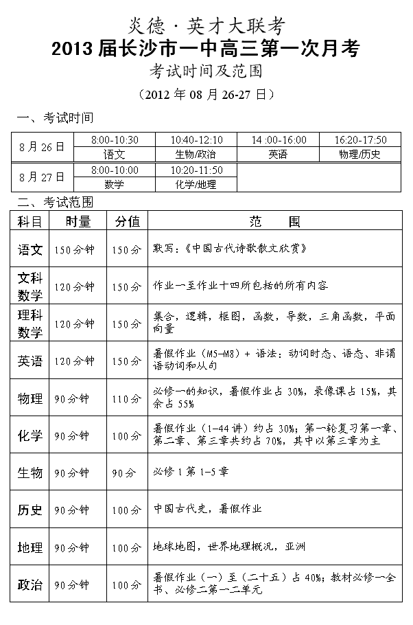 來源:炎德文化點擊:2012-08-15 17:25:58收藏本文當前位置:考試范圍 長沙一中 高三 正文