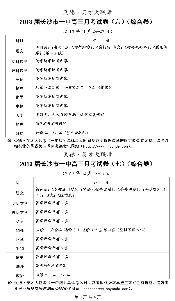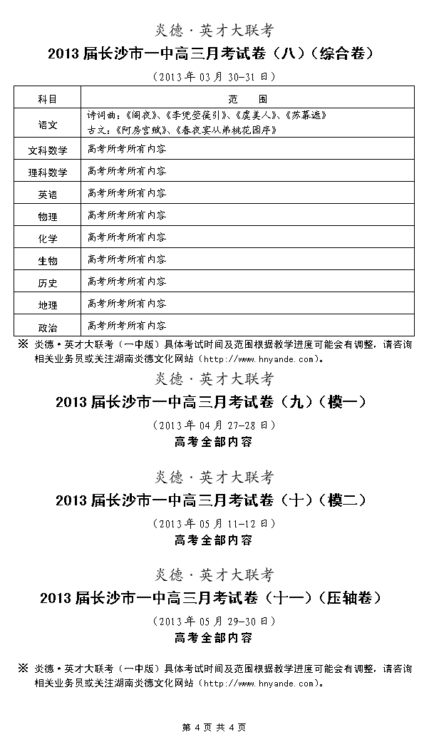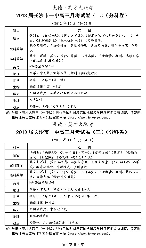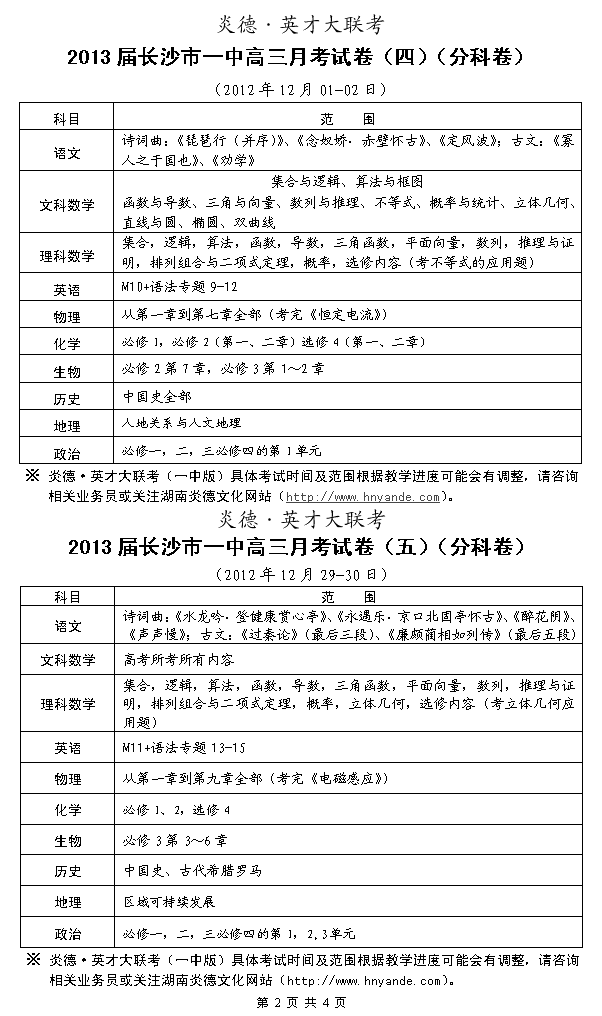 來源:炎德文化點擊:2012-09-11 10:55:34收藏本文當前位置:考試范圍 長沙一中 高三 正文