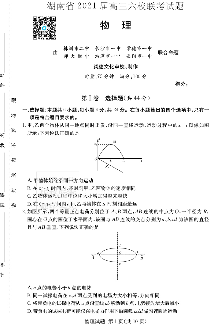 上一篇:【數學】湖南省2021屆高三六校聯考