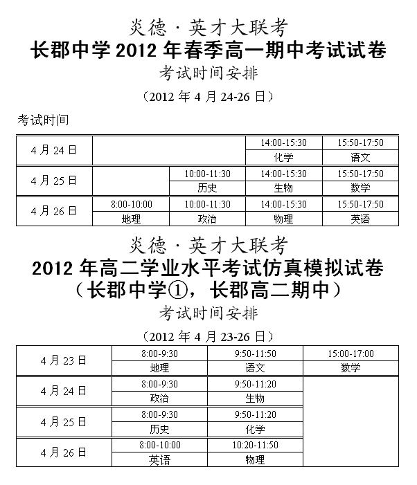 下一篇:2012春季長郡中學高一高二期末考試時間及范圍