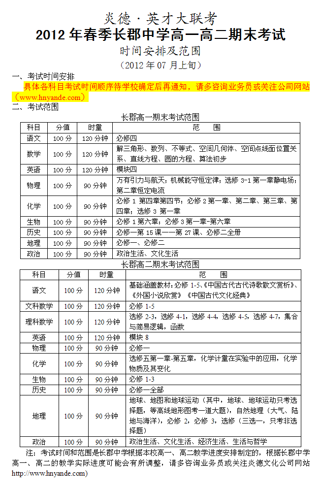 上一篇:長郡中學2012年春季高一高二期中考試時間安排
