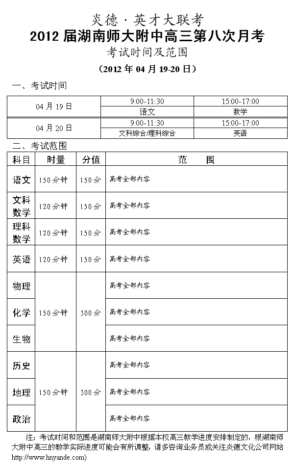 下一篇:炎德英才大聯考長郡中學2012屆高三第一次模擬考試時間安排(長郡9次月考)