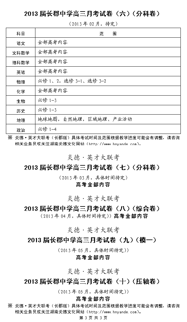 來源:炎德文化點擊:2012-09-11 14:22:49收藏本文當前位置:考試范圍 長郡中學 高三 正文