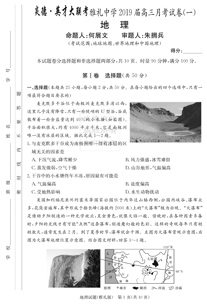 2026湖南師大附中新高考考前小題訓練·地理