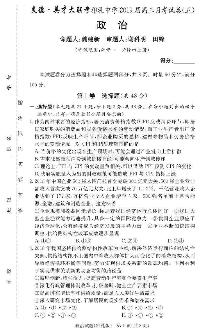 2026湖南師大附中新高考考前小題訓練·政治