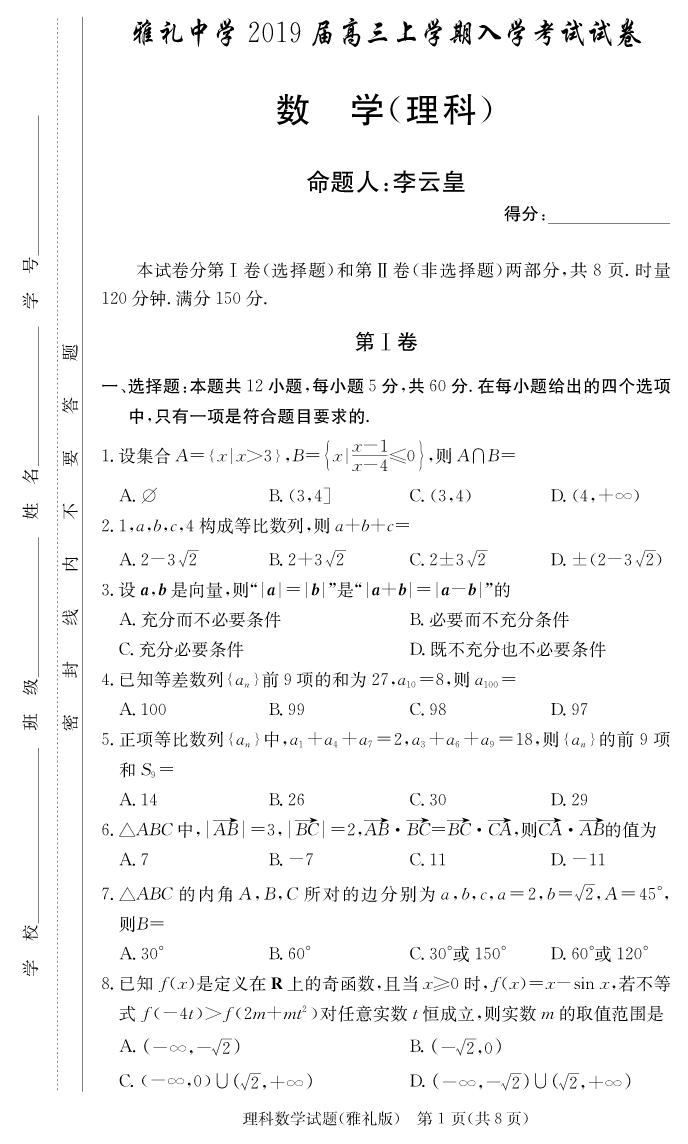 下一篇:【歷史】雅禮中學2019屆高三上學期入學考試