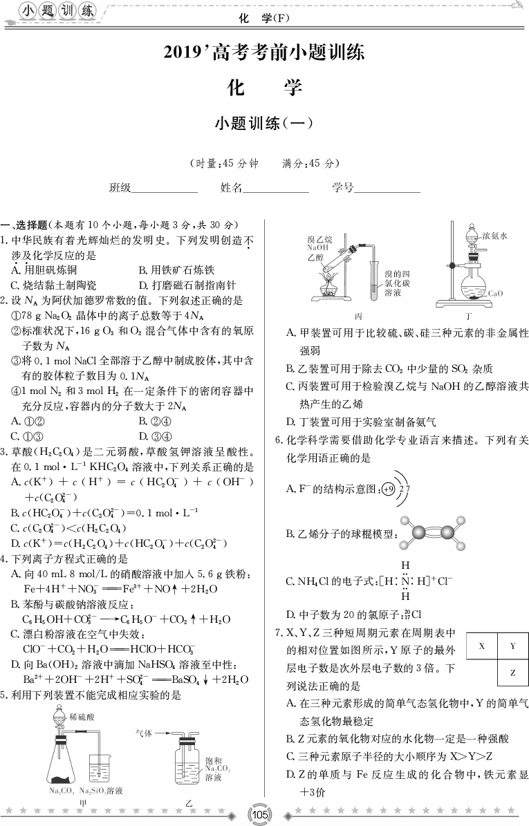 2026年高中寒假作業自主學習作業本·高三年級·化學