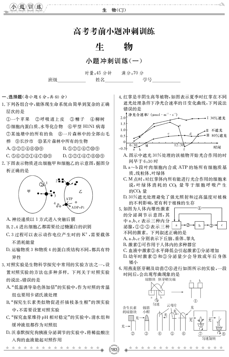 2026年高中寒假作業自主學習作業本·高三年級·生物