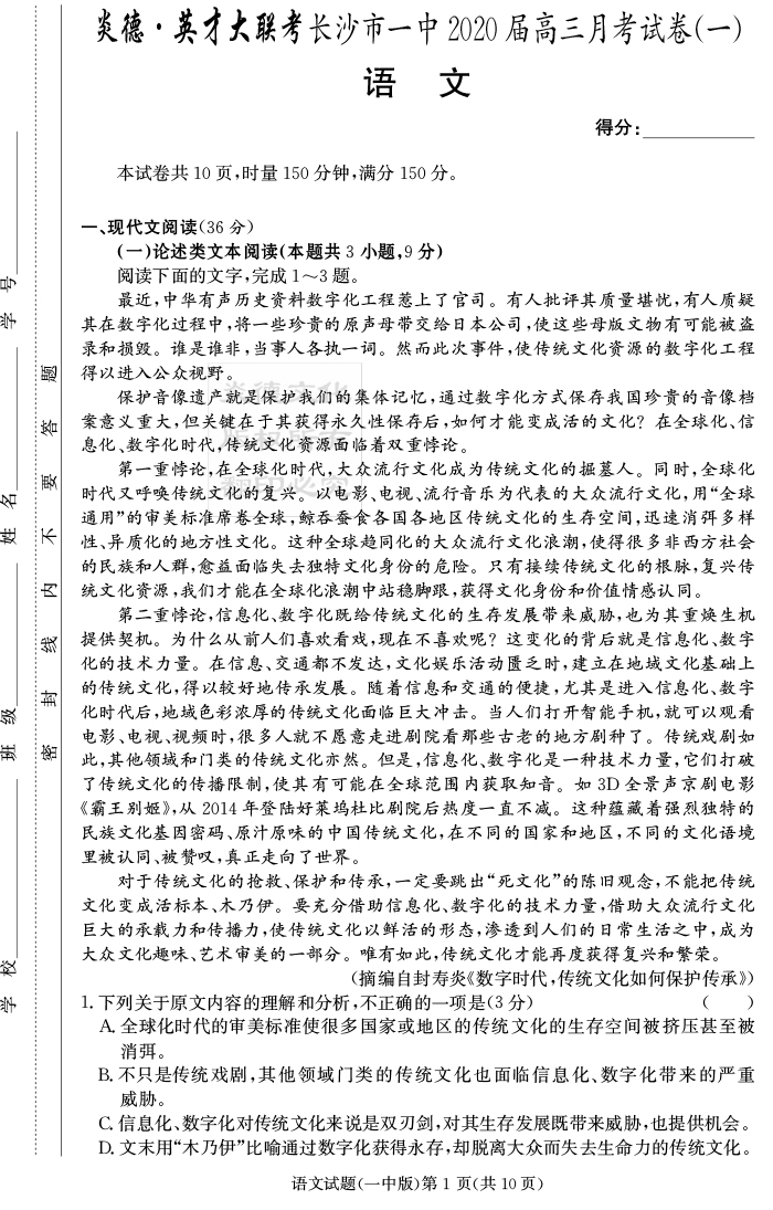 2026湖南師大附中新高考考前小題訓練·語文