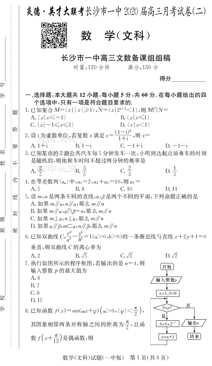 2026湖南師大附中新高考考前小題訓練·數學