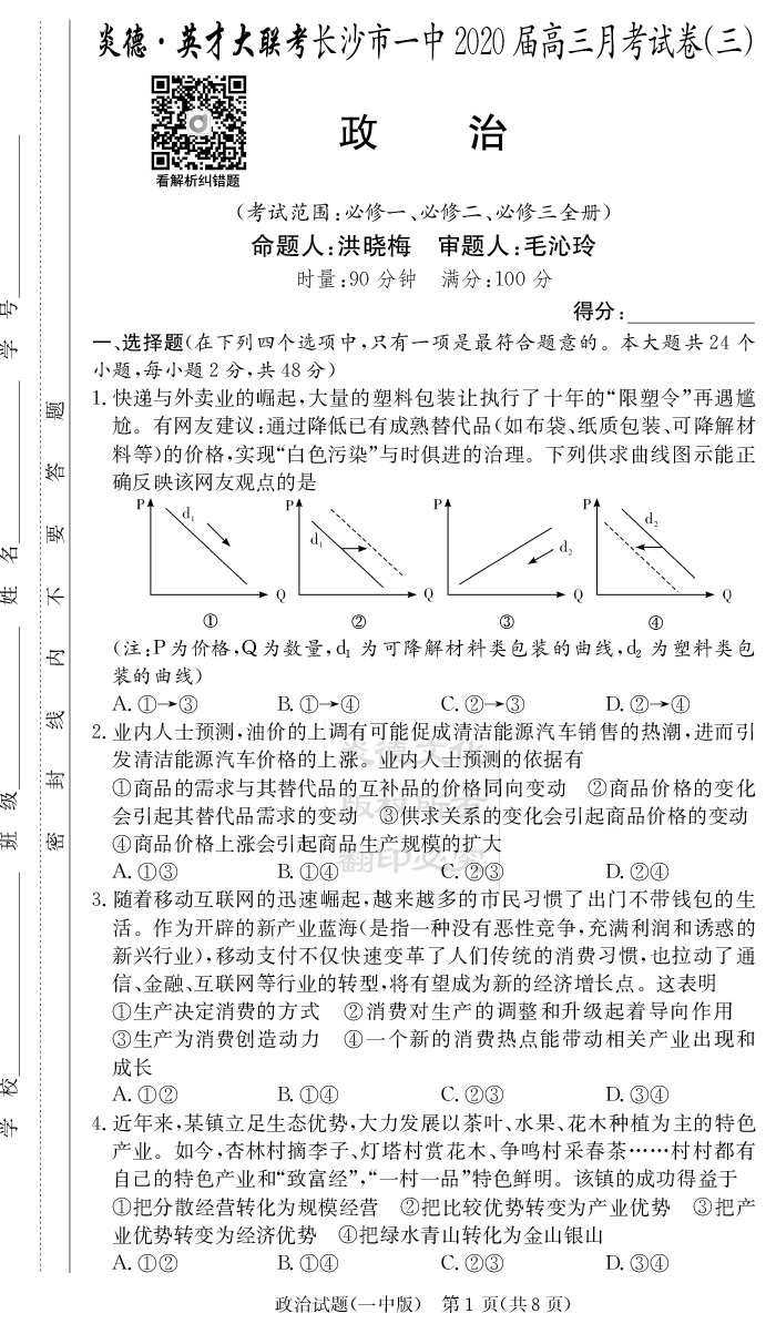 2026湖南師大附中新高考考前小題訓練·政治