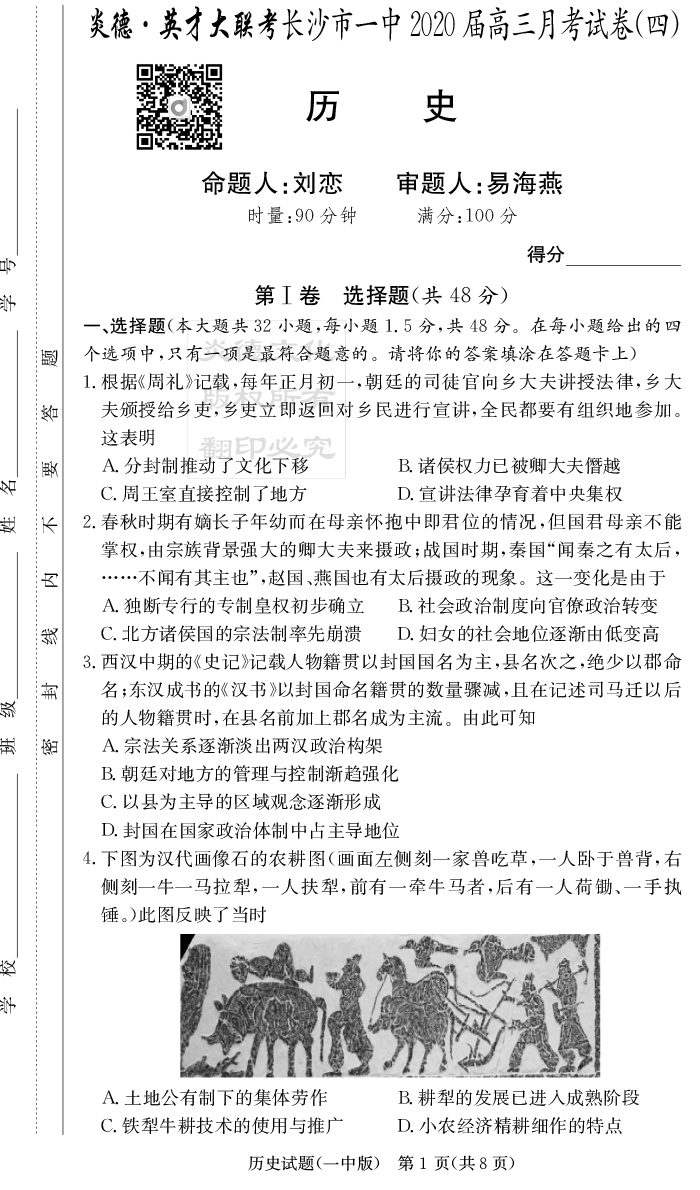 2026年高中寒假作業自主學習作業本·高三年級·歷史