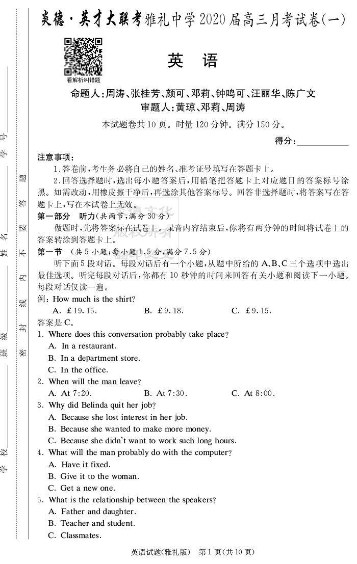 下一篇:【語文】炎德英才大聯考2020屆雅禮中學高三1次月考