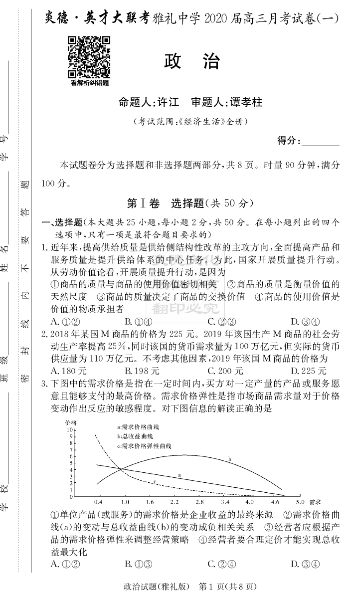 上一篇:【語文】炎德英才大聯考2020屆雅禮中學高三1次月考