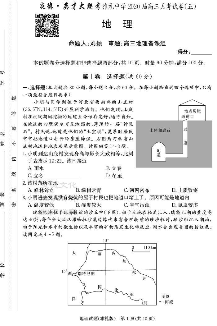 2026年高中寒假作業自主學習作業本·高三年級·地理