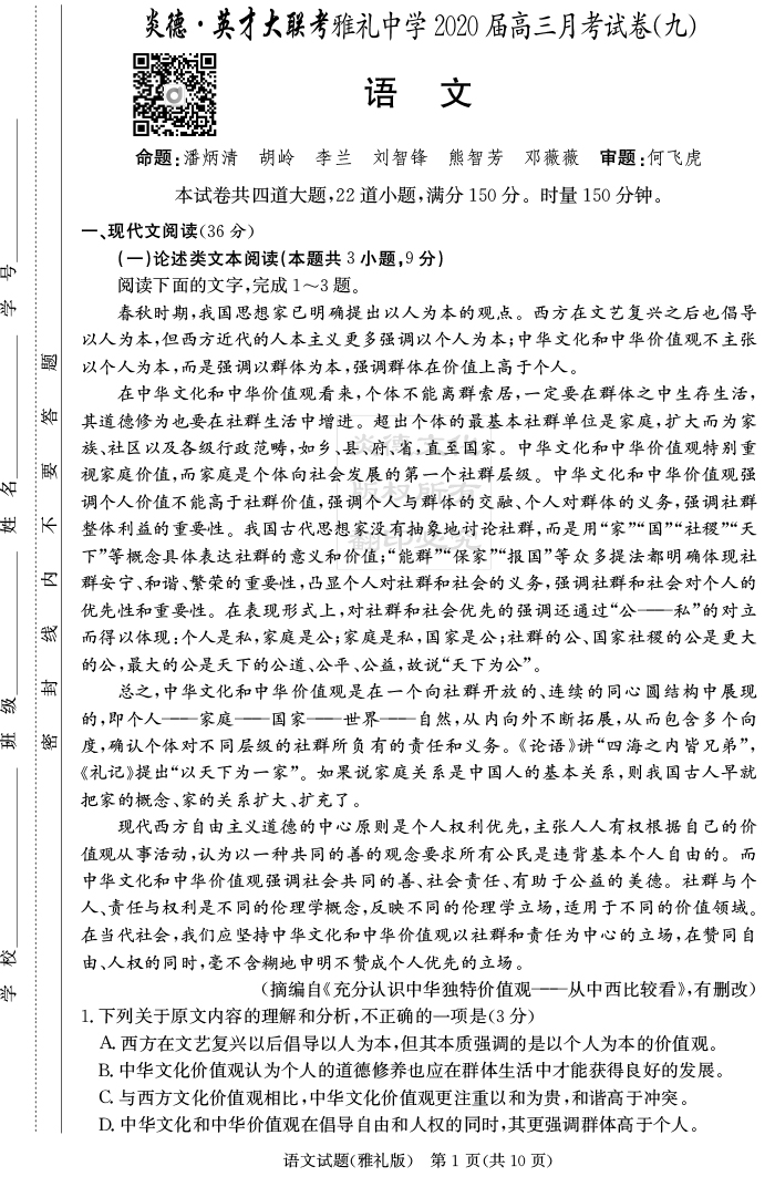 上一篇:【英語】炎德英才大聯考2020屆雅禮中學高三9次月考
