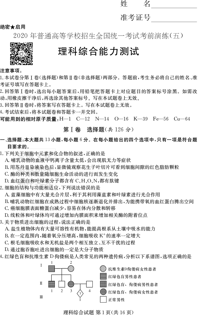 2026年高中寒假作業自主學習作業本·高三年級·生物