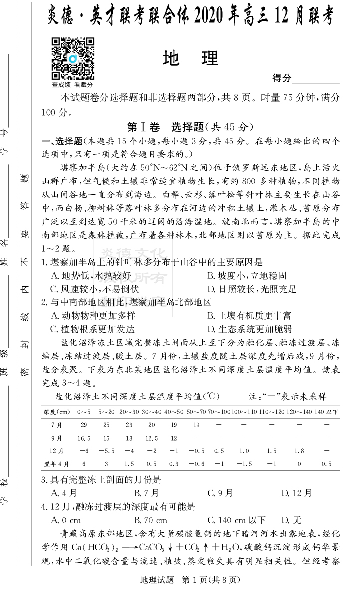 2026年高中寒假作業自主學習作業本·高三年級·地理