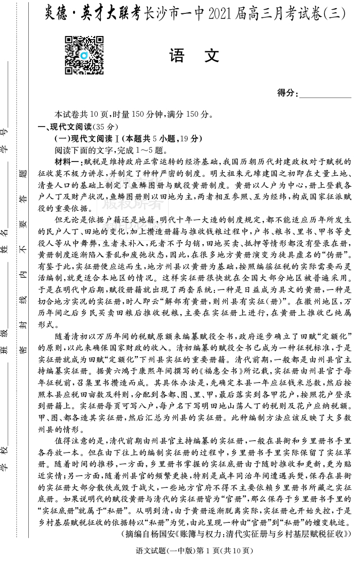 2026湖南師大附中新高考考前小題訓練·語文