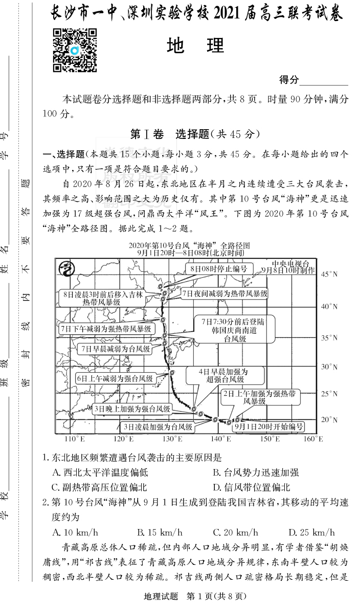 2026年高中寒假作業(yè)自主學習作業(yè)本·高三年級·地理