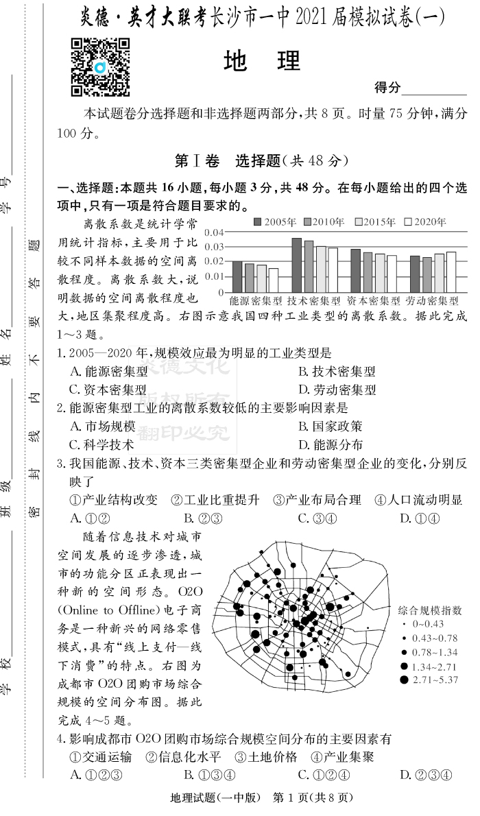 2026湖南師大附中新高考考前小題訓練·地理