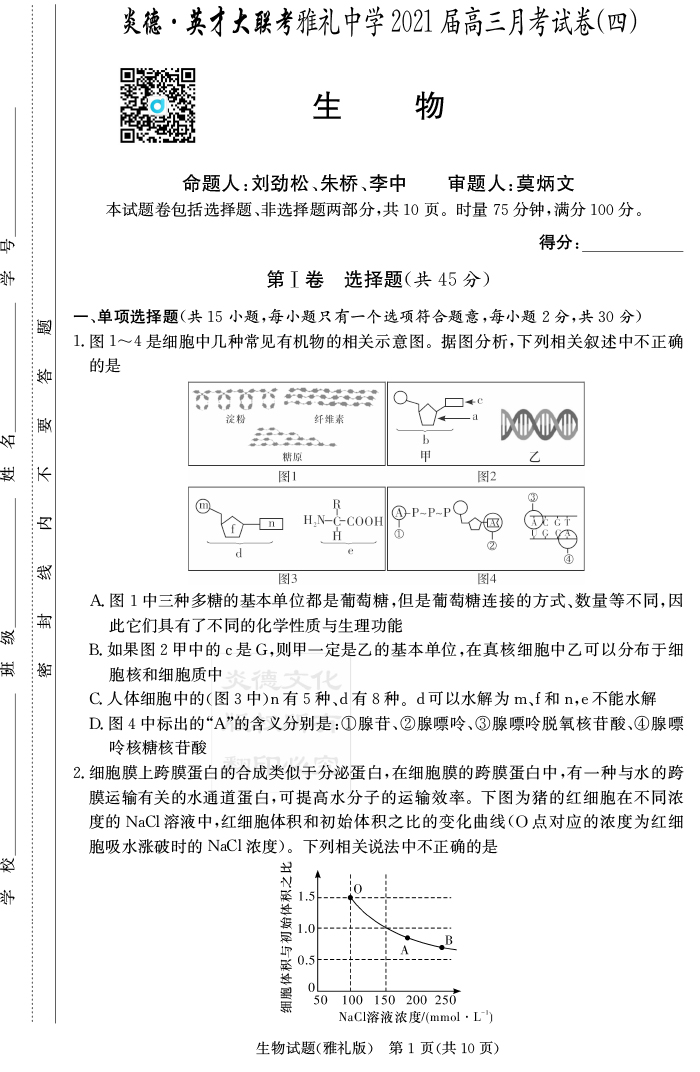 2026湖南師大附中新高考考前小題訓練·生物