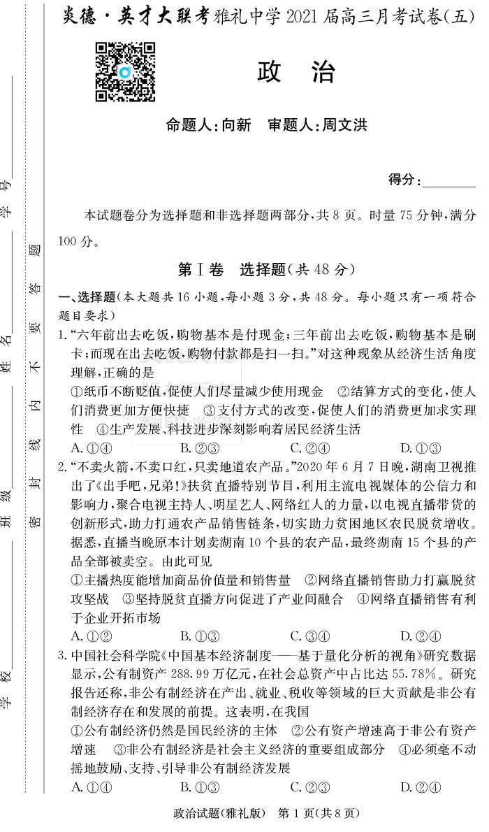 上一篇:【語文】炎德英才大聯考2021屆雅禮中學高三5次月考