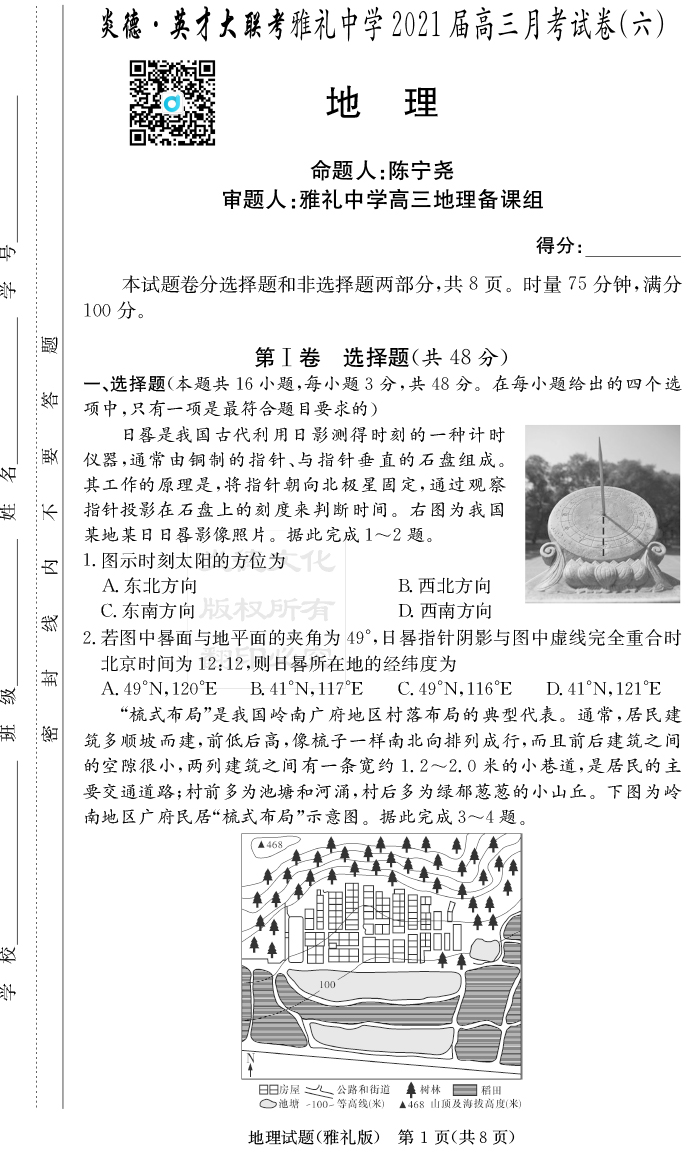 上一篇:【政治】炎德英才大聯考2021屆雅禮中學高三5次月考