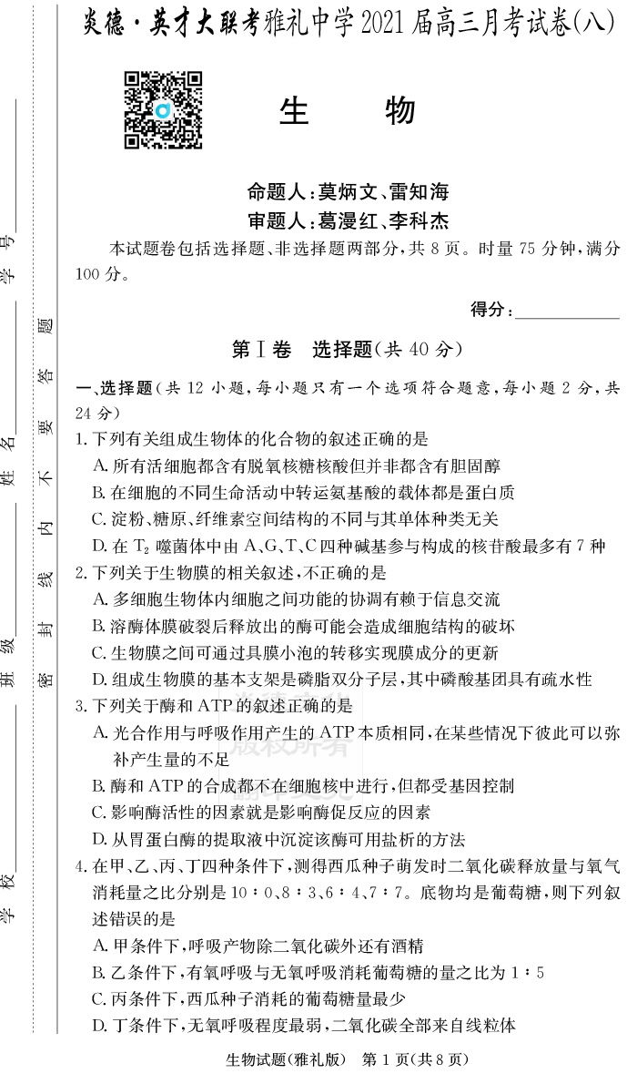 上一篇:【歷史】炎德英才大聯考2021屆雅禮中學高三8次月考