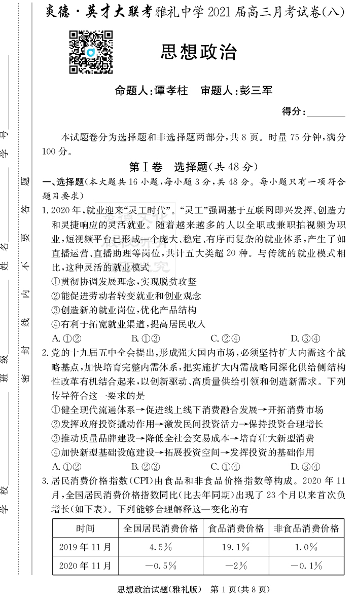 上一篇:【語文】炎德英才大聯考2021屆雅禮中學高三8次月考