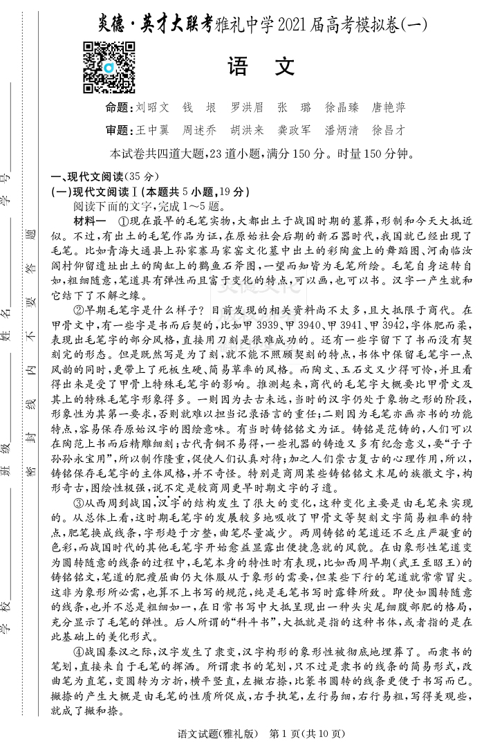 2026湖南師大附中新高考考前小題訓練·語文