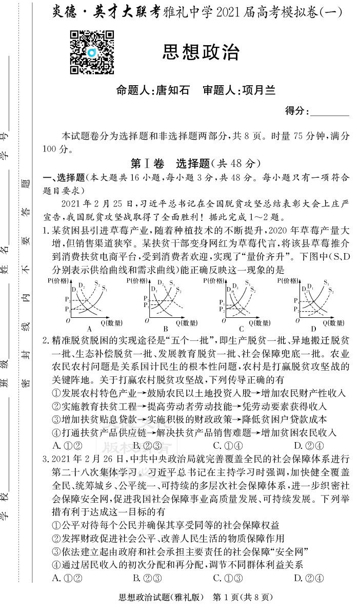 2026湖南師大附中新高考考前小題訓練·政治