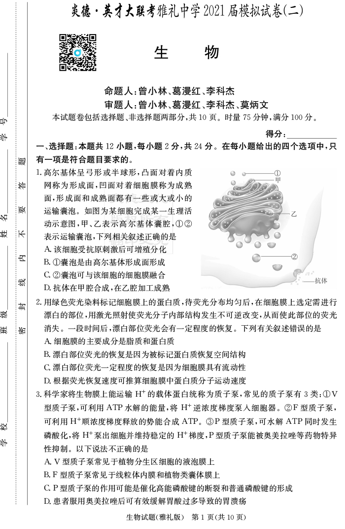 2026年高中寒假作業自主學習作業本·高三年級·生物