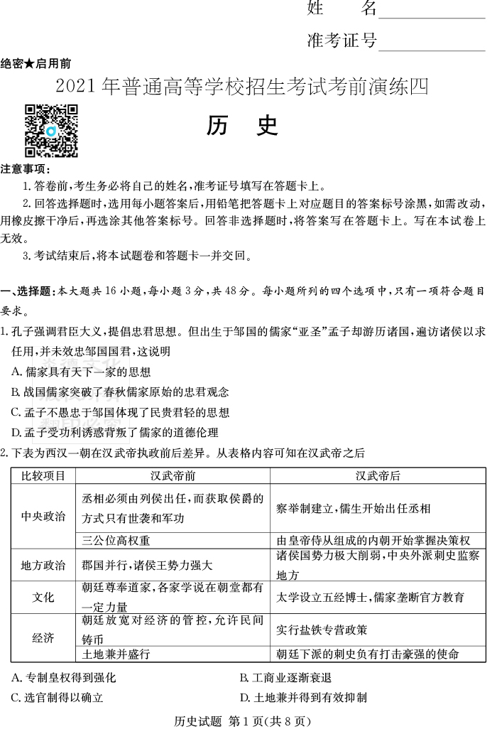 2026年高中寒假作業自主學習作業本·高三年級·歷史