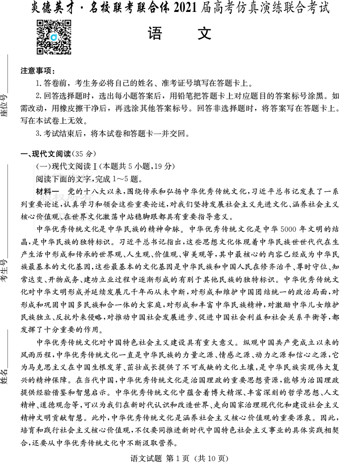 上一篇:【英語】2021年普通高等學校招生全國統一考試考前演練(五)