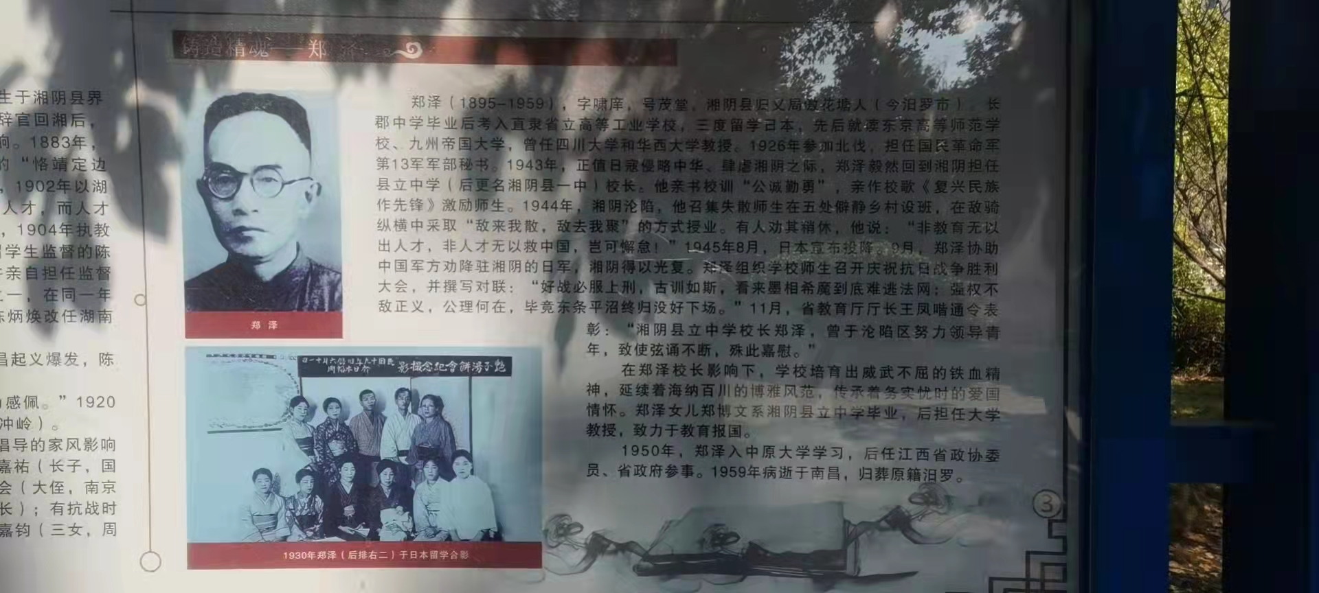 1944年5月27日,日軍侵縣,湘陰淪陷,學(xué)校疏散。次年2月,由鄭澤校長集聚失散生在洪源洞、清溪、道南、文洲、錫安鄉(xiāng)等五處僻靜鄉(xiāng)村設(shè)立分班,在敵騎縱橫中采取敵來我散,敵去我聚的方式授業(yè),度過了一段艱難的歲月。