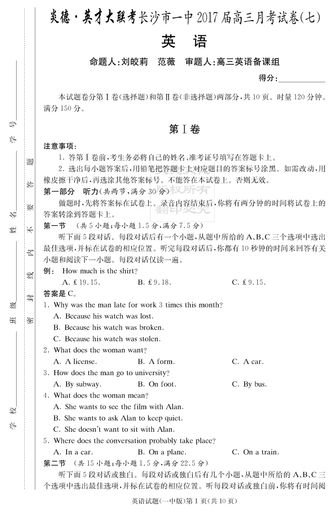 下一篇:【語文】炎德英才大聯考2017長沙一中高三7次月考
